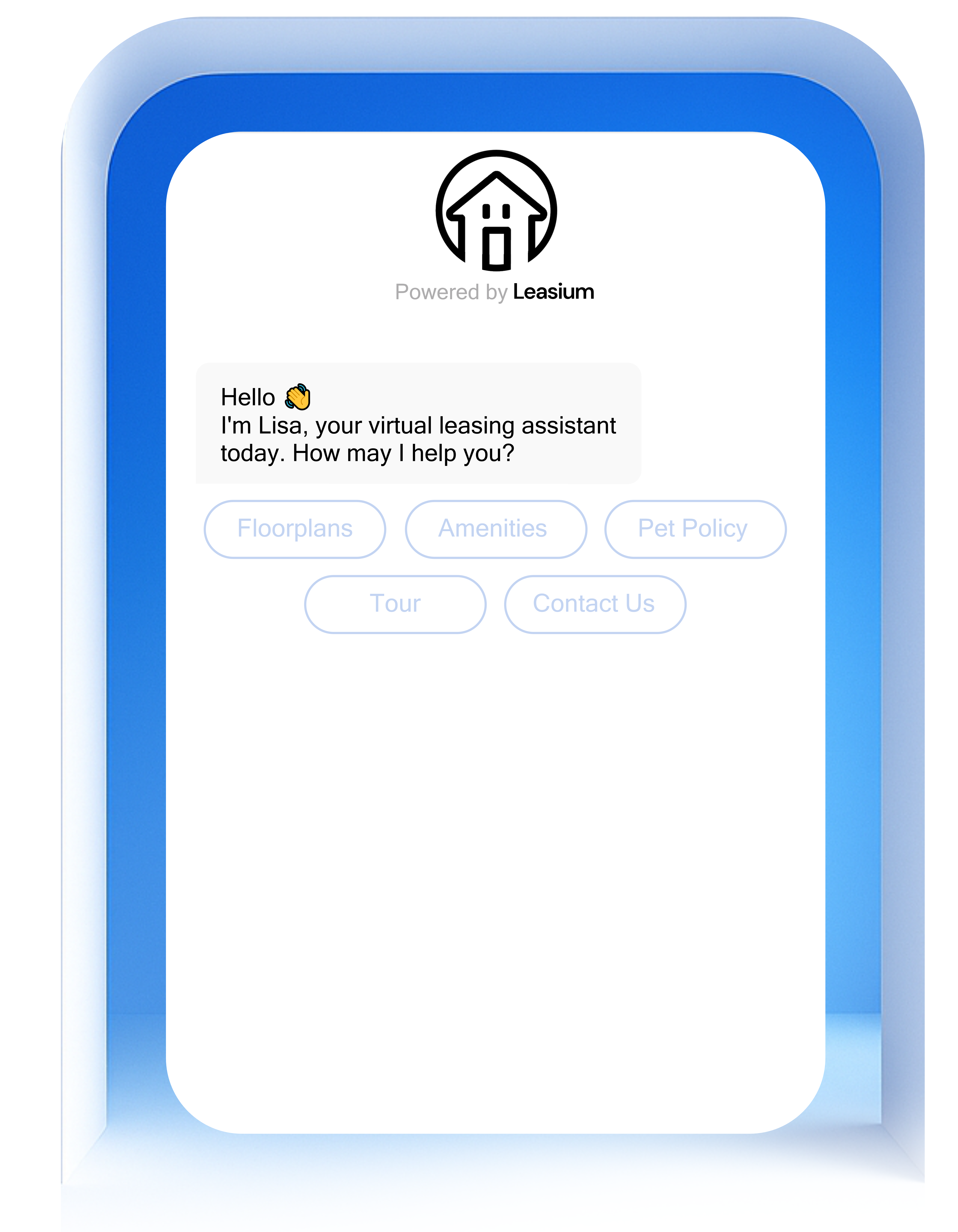 A 24/7 AI chatbot that responds to over 10,000 user questions a month, ranging from tour scheduling to questions about your property and its location.